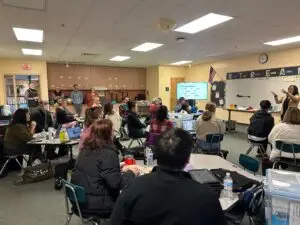 In January, Technology Instructional Assistants (“TIAs”) got to go back to school with BEF for a special morning of training. TIAs are responsible for weekly tech specials classes that reach all elementary school students across Beaverton schools. The morning session focused on design thinking and a show and tell about how TIAs are making use of some of the new learning tools available in the Innovation Lending Library.